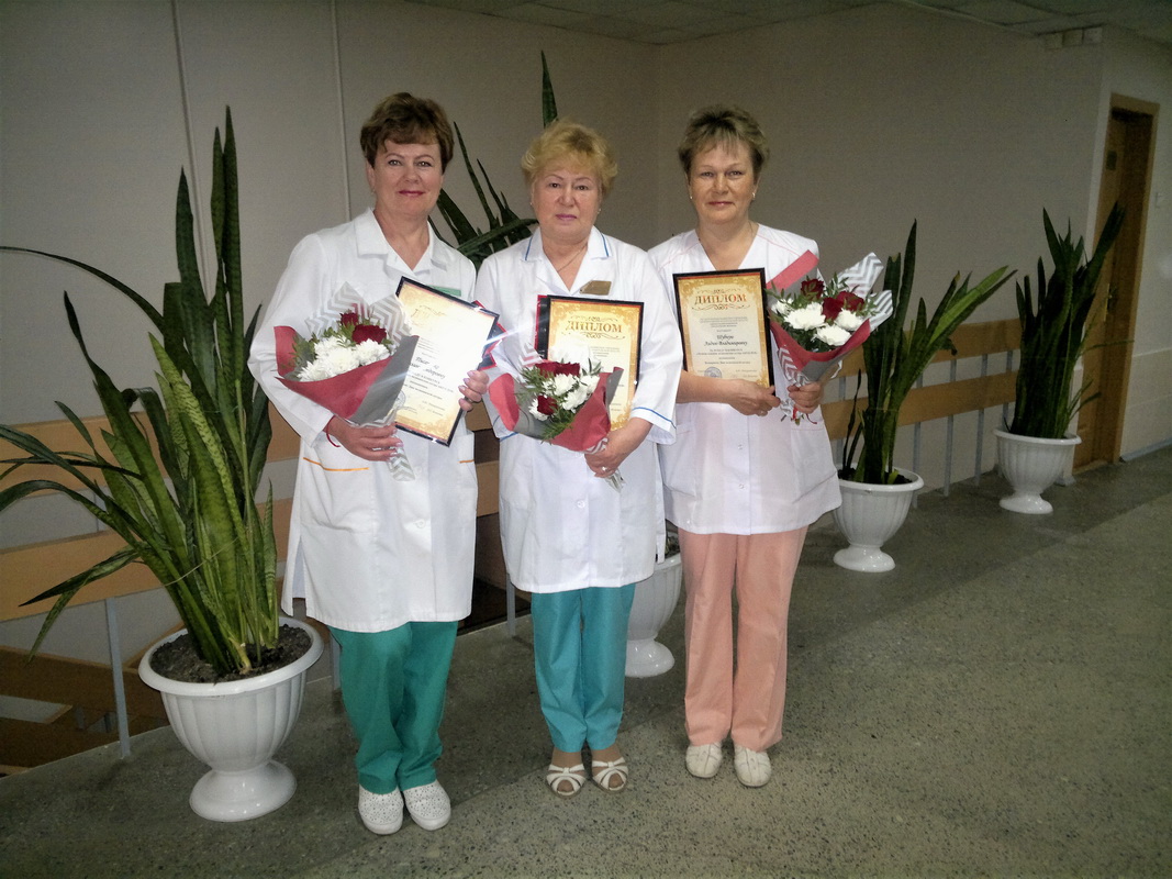 Конкурсная комиссия определила трех победителей. Это старшие медицинские сестры Багрецова Галина Яковлевна (радиологическое отделение №1), Писаренко Галина Федоровна (хирургическое отделение №6) и Шубная Лидия Владимировна (хирургическое отделение №7). Все трое были награждены дипломами победителей конкурса, ценными подарками и сладкими призами. Остальные конкурсантки и их отделения тоже не остались без внимания – вручались дипломы участников конкурса и сладкие призы.