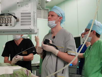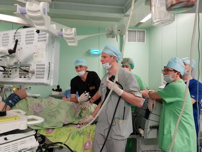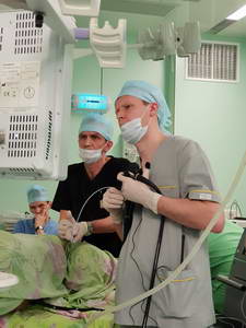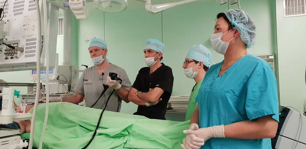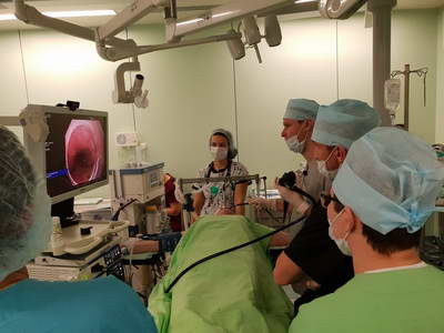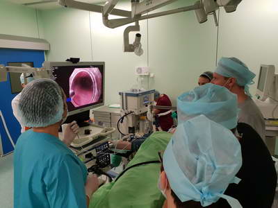 Как рассказал заведующий эндоскопическим отделением АКОД А.Ю. Назаров, в рамках конференции прошел продолжительный мастер-класс в ходе которого были выполнены стентирование опухолевого стеноза пищевода, резекция слизистой пищевода у пациента с пищеводом Барретта, диссекция в подслизистом слое неоплазии толстой кишки, несколько диагностических исследований.