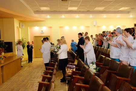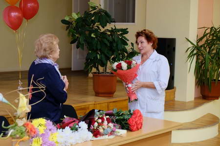 Татьяну Сергеевну зал встречал аплодисментами. И совершенно неважно, что торжество состоялось спустя почти две недели после юбилейной даты – именинница была в отъезде, и все просто ждали ее возвращения. В полной уверенности, что эта встреча в диспансере обязательно должна произойти. Как сказал министр здравоохранения Архангельской области А.А. Карпунов: «Мы все равно оставили за собой право здесь вас видеть – в том лечебном учреждении, в котором вы проработали столько лет, создали определенную школу, заложили традиции, ввели правила и критерии оценки».