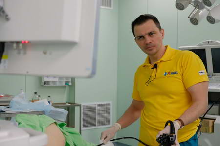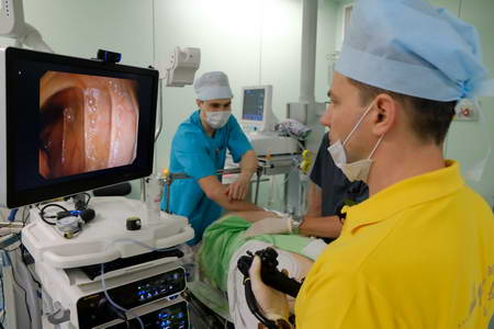 Как рассказал заведующий эндоскопическим отделением АКОД А.Ю. Назаров, во время мастер-класса сначала провели два диагностических исследования (гастроскопия и колоноскопия). В первом случае стояла задача определиться с тактикой наблюдения за пациентом с пищеводом Барретта. Во втором – с тактикой эндоскопического лечения раннего рака прямой кишки. Затем были выполнены две резекции эпителиальных образований (полипов) толстой кишки.