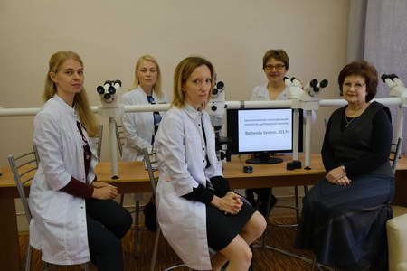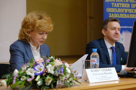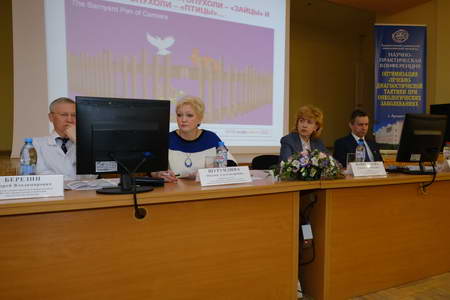 От Архангельского клинического онкологического диспансера с докладами выступили врач-онколог отделения химиотерапии Л.Н. Лебедева и врач-цитолог цитологической лаборатории О.М. Цыганова.