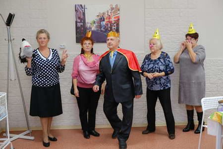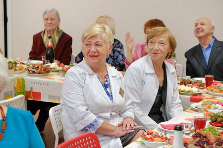 Для ветеранов праздник продолжился в кафе АКОД. Дорогим гостям приготовили не только угощение, но и развлекательную программу. Ведущей выступила старшая медицинская сестра блока закрытых источников радиотерапевтического отделения №2 В.И. Крекотень.