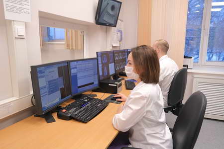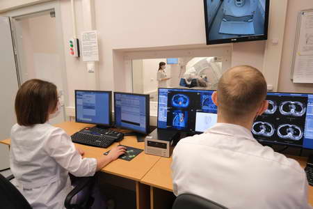 Напомним, ОФЭКТ/КТ – это эффективный метод диагностики злокачественных заболеваний молочных желез, легких, органов брюшной полости и малого таза, а также метастазов опухолей в лимфатических узлах и костях. Кроме того, это уникальный метод определения функциональных изменений почек, щитовидной, паращитовидных желез, тромбоэмболии легочной артерии.