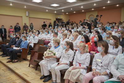 Поздравляю вас с праздником! И пользуясь случаем, хотел бы сегодня вручить заслуженные награды сотрудникам диспансера.