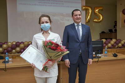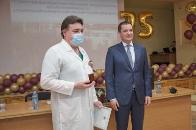 Грамотой губернатора Архангельской области за многолетний добросовестный труд, личные заслуги в повышении уровня и качества оказания медицинской помощи и в связи с 75-летием со дня образования медицинской организации были награждены: