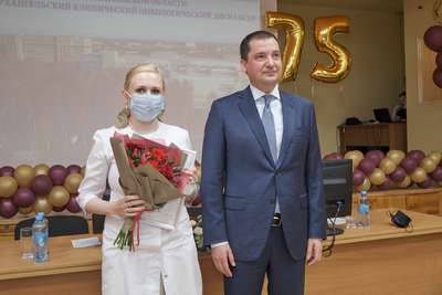 Благодарность губернатора Архангельской области за многолетний добросовестный труд в системе здравоохранения Архангельской области, высокий профессионализм и в связи с 75-летием со дня образования медицинской организации объявлена врачу-онкологу хирургического отделения № 6 Семеновой Татьяне Галеевне и заведующей химиотерапевтическим отделением Нечаевой Марине Николаевне.