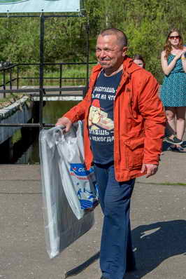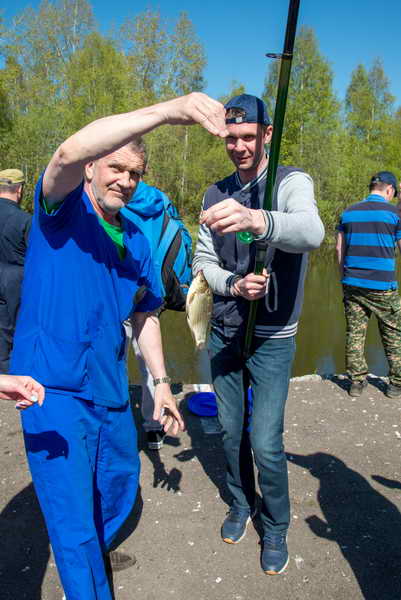 По условиям конкурса для рыбалки отводился ровно 1 час. Именно столько времени потребовалось победителю конкурса Потуткину Юрию (Отдел лучевой диагностики), чтобы выловить почти 3 кг рыбы. За победу в конкурсе главный врач диспансера Панкратьева Александра Юрьевна вручила ему туристическую палатку. За второе место в конкурсе рыболовов был награжден Соколов Сергей, пациент Хирургического отделения №3. Его призом стал набор для пикника. Третье место и спальный мешок достались инженеру Отделения для обеспечения эксплуатации медицинского и информационного оборудования Потапову Артему.