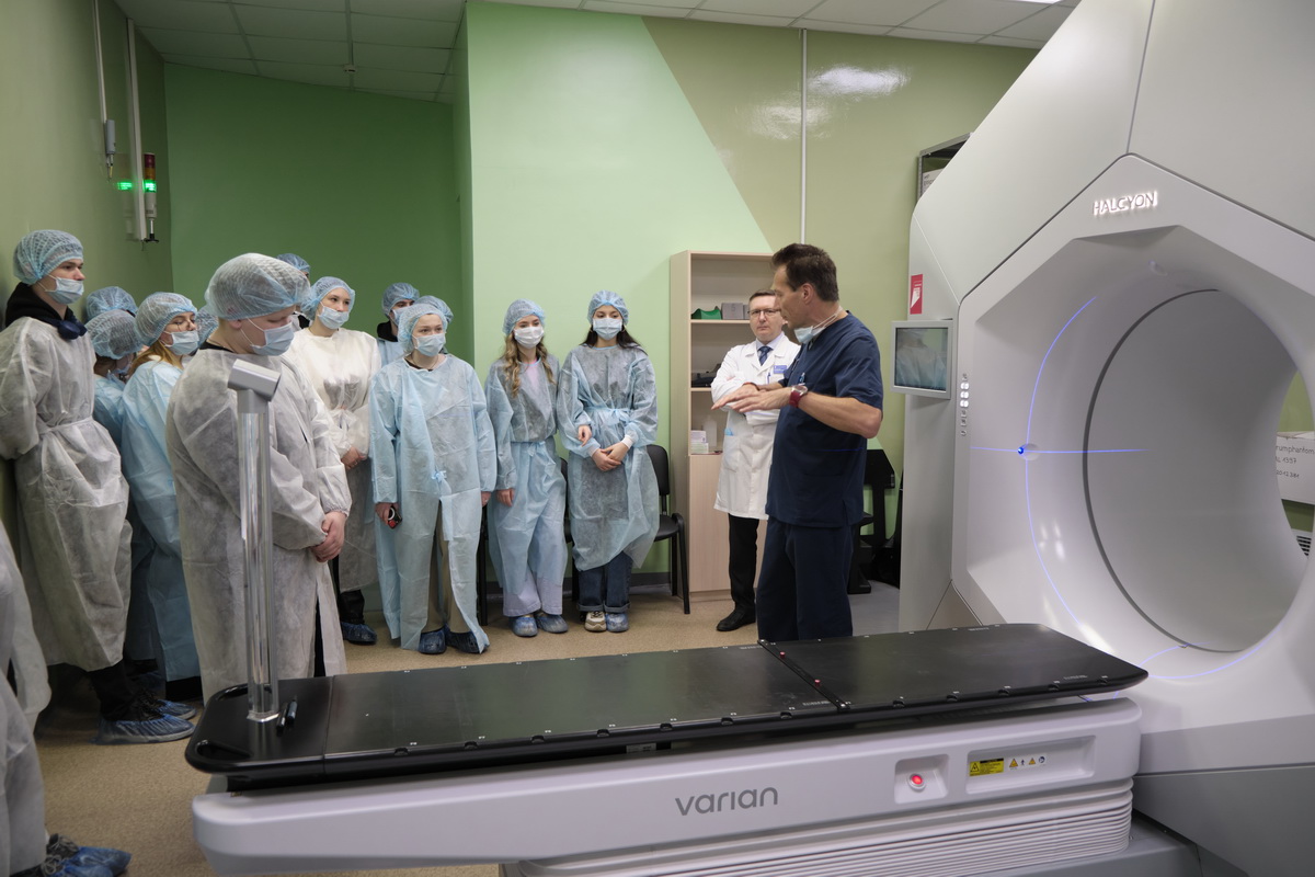 Ребята побывали в операционной, реанимационном отделении, в центре лучевой диагностики, в центральном стерилизационном отделении, смогли увидеть мощное оборудование, с которыми работают наши радиотерапевты.