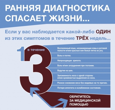 – Шансы больных на излечение возрастают в разы при выявлении онкозаболеваний на ранних стадиях, процент выздоровления достигает 80–90 процентов. К сожалению, при выявлении злокачественных новообразований органов головы и шеи на поздних стадиях лечение малоэффективно, – отметила специалист отдела организации медицинской помощи взрослому населению министерства здравоохранения Архангельской области Оксана Шурундина.