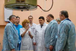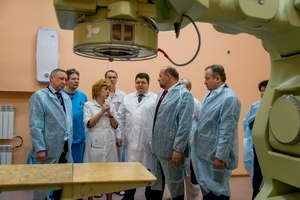 Полпреду показали организацию работы диспетчерской, современные операционные, реанимационное отделение, медицинское оборудование, в том числе линейный ускоритель, который направляет лучевой удар прямо на опухоль, разрушая раковые клетки и минуя здоровые ткани. Это позволяет повысить качество и увеличить продолжительность жизни пациентов. В день на таком аппарате проходят лечение около 50 человек.